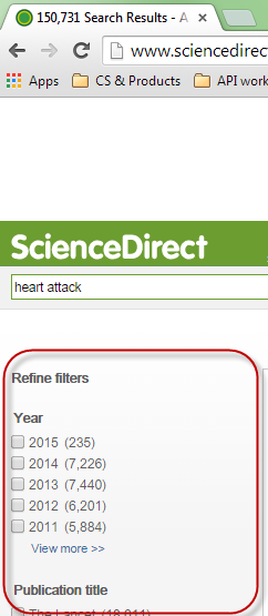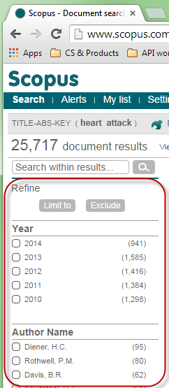 Some screenshots of Facets in the interfaces of different Elsevier products: